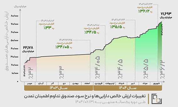 صندوق سرمایهگذاری «تداوم اطمینان تمدن» در دوره یکساله منتهی به ۳۱ شهریورماه ۱۴۰۴، با ثبت عملکردی موفق توانست بازده سالانه خود را از ۳۲ درصد به ۳۶.۲ درصد افزایش دهد.