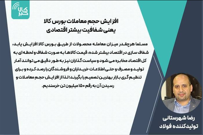 مسلما هرچقدر میزان معامله محصولات از طریق بورس کالای ایران افزایش یابد، شفاف سازی در اقتصادمان بیشتر شده، قیمت کالاها به صورت شفاف و لحظه ای به کل اقتصاد مخابره می شود و سیاست گذاران نیز به طور دقیق می توانند آمار تولید و مصرف و حتی اطلاعات خریداران و فروشندگان را رصد کرده و برای تنظیم گری بازار بهترین تصمیم را بگیرند؛ لذا از افزایش حجم معاملات و رسیدن آن به رقم۱۵۰ میلیون تنی خرسندیم.