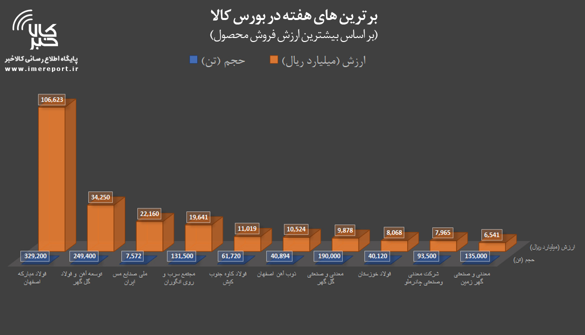 به گزارش کیوسک خبر به نقل از کالاخبر ، بورس کالای ایران برترین های بورس کالا در هفته منتهی به ۳۱ خرداد را براساس ارزش فروش شرکت ها در بازار فیزیکی اعلام کرد.