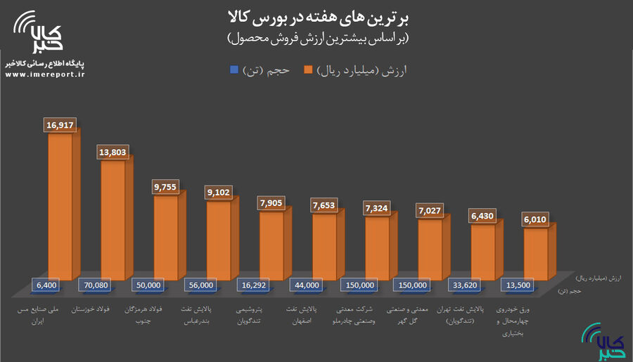 به گزارش کیوسک خبر به نقل از کالاخبر ، بورس کالای ایران برترین های بورس کالا در هفته منتهی به ۱۴ مهر را براساس ارزش فروش شرکت ها در بازار فیزیکی اعلام کرد.