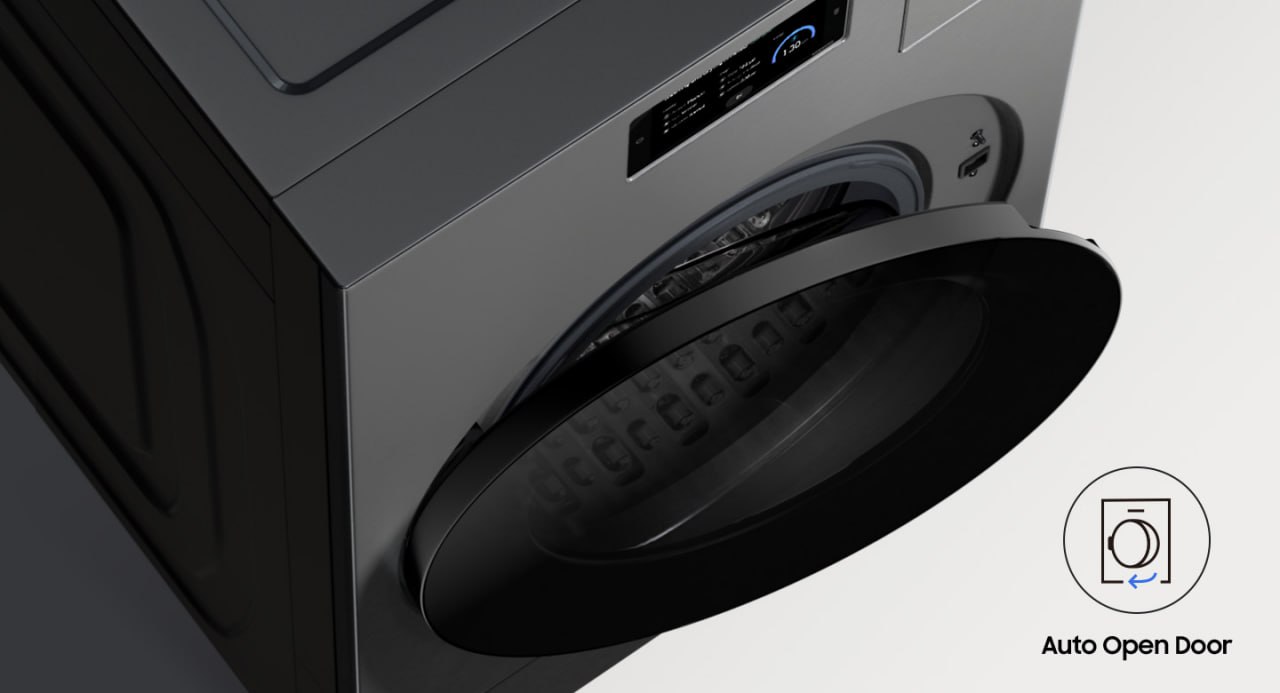 با تجهیز ماشینهای لباسشویی و خشککنهای سامسونگ به قابلیت Auto Open Door، پس از پایان چرخه شستوشو به صورت خودکار درب دستگاه باز شده و از ایجاد بوی ناخوشایند جلوگیری میکند.