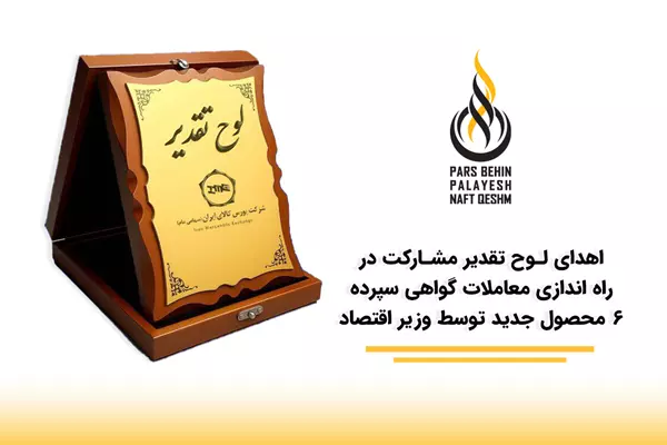 شرکت پارس بهین پالایش نفت قشم، از شرکتهای زیرمجموعه گروه انرژی پاسارگاد، به پاس مشارکت مؤثر در توسعه بازار مالی بورس کالا و نقشآفرینی در راهاندازی معاملات گواهی سپرده کالایی قیر، از سوی وزیر امور اقتصادی و دارایی مورد تقدیر قرار گرفت و لوح سپاس دریافت کرد.