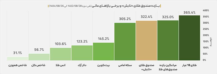 این دادهها نشان میدهد صندوق «تابش» نه تنها توانسته پوشش کاملی در برابر تورم ایجاد کند، بلکه با اختلاف فاحشی از بازارهای ارز و بورس پیشی گرفته و بازدهی تقریباً سه برابری نسبت به انس جهانی طلا (۱۰۳.۶ درصد) کسب کرده است.