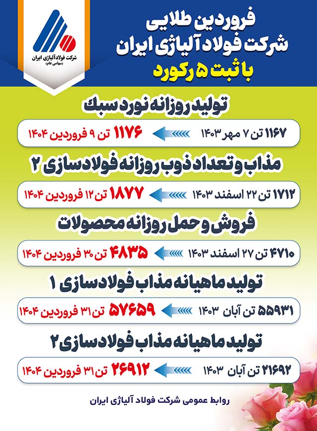 شرکت فولاد آلیاژی ایران با ثبت ۵ رکورد بیسابقه در تولید و فروش در نخستین ماه سال، گامی بزرگ در مسیر رشد و خودکفایی صنعتی کشور برداشت.