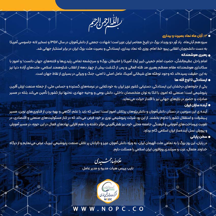 » پیام دکتر غلامرضا جمشیدی به مناسبت سیزدهم آبان ماه سالروز مبارزه با استکبار جهانی و روز دانش آموز
