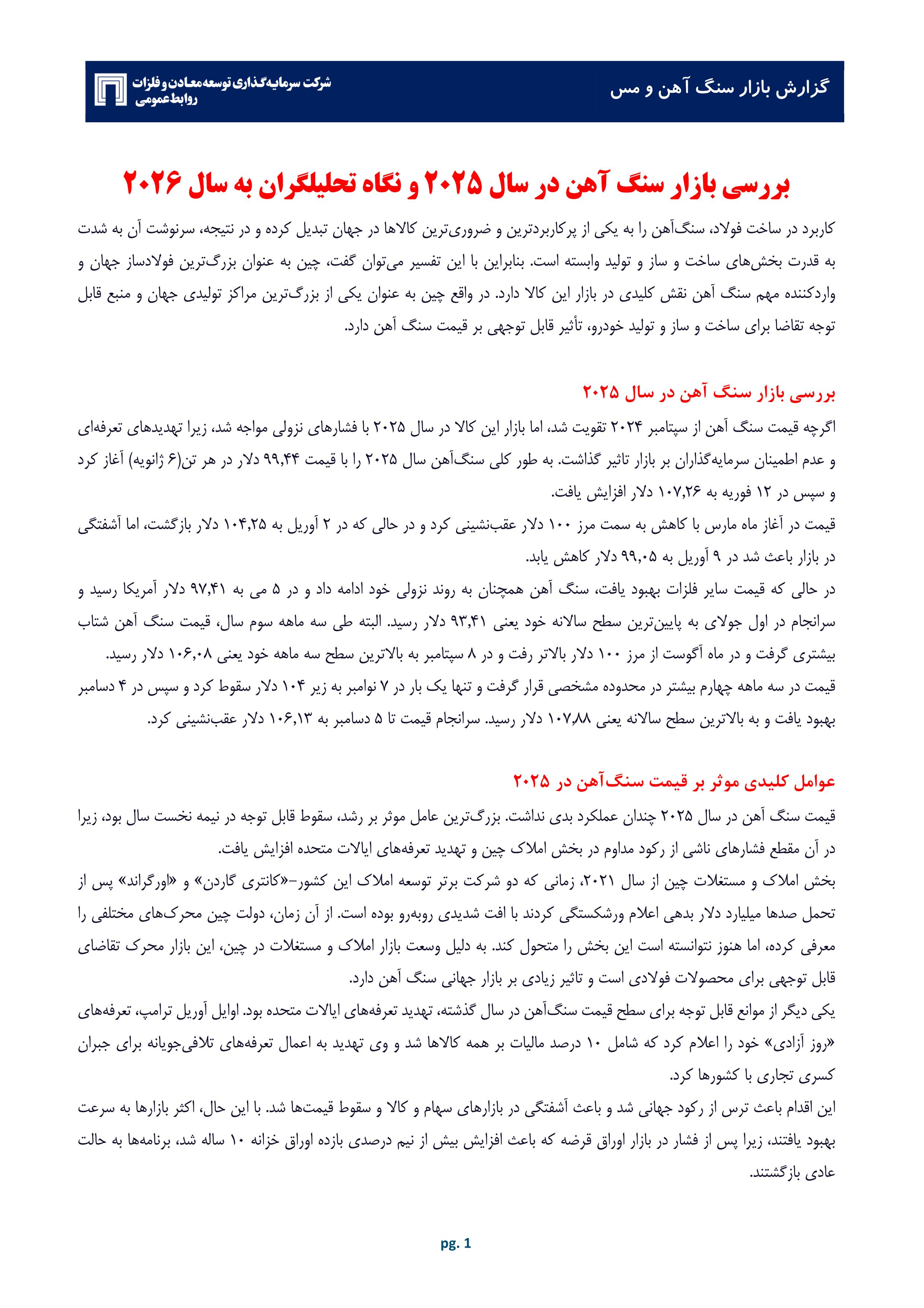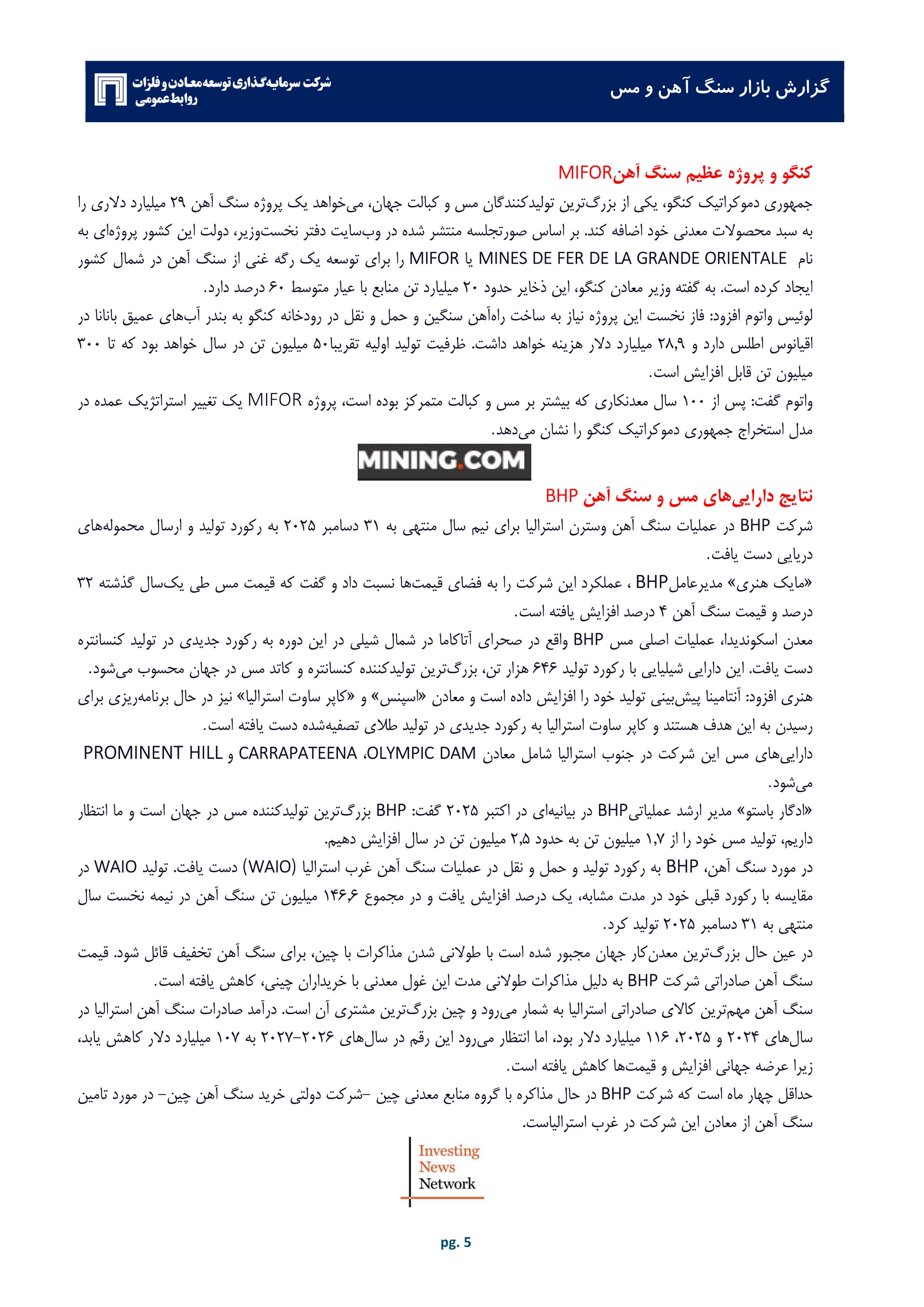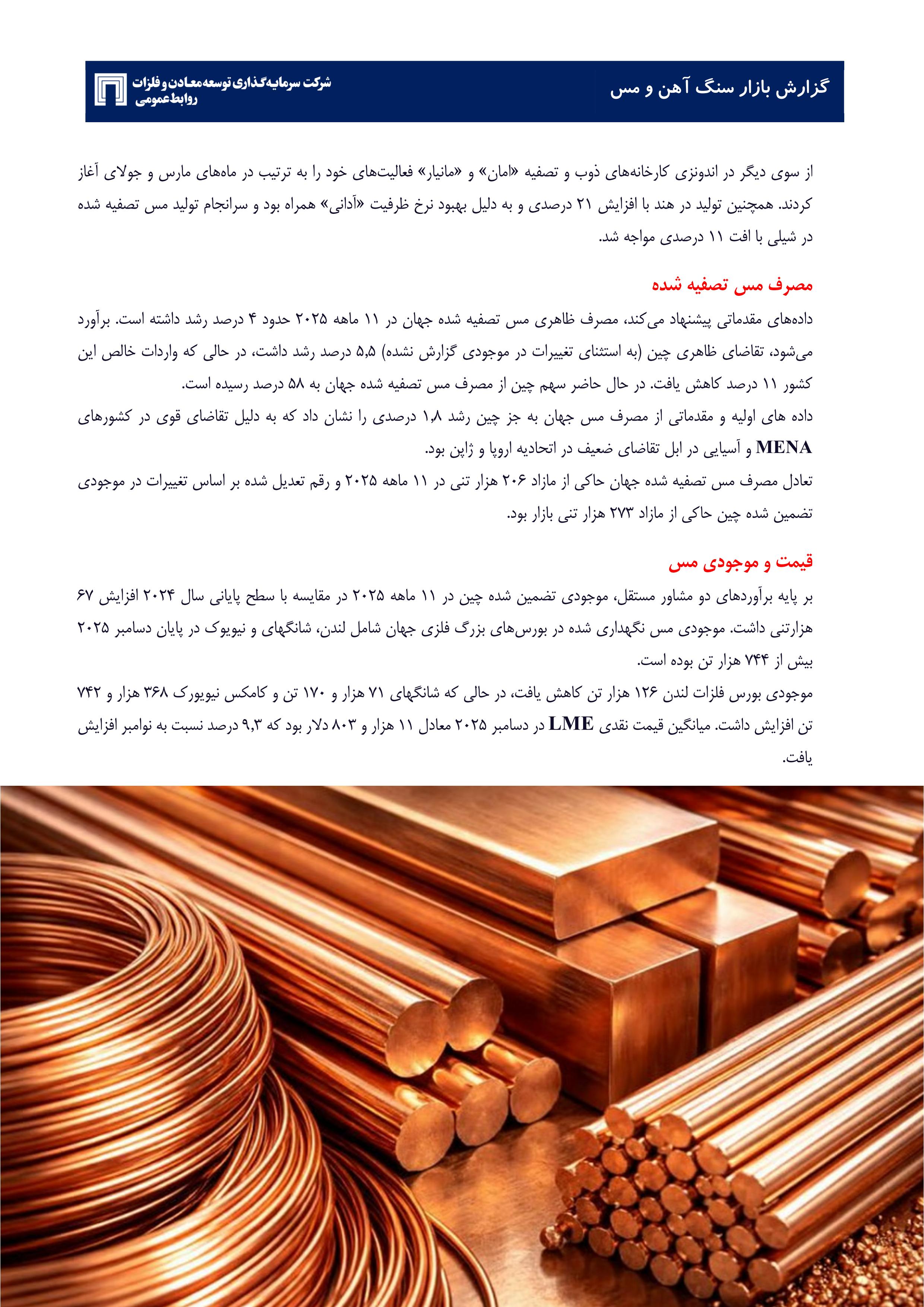 کاربرد در ساخت فولاد، سنگآهن را به یکی از پرکاربردترین و ضروریترین کالاها در جهان تبدیل کرده و در نتیجه، سرنوشت آن به شدت به قدرت بخشهای ساخت و ساز و تولید وابسته است. در مورد مس هم میتوان گفت، این فلز از ساخت و ساز، تولید خودرو و برق گرفته تا مراکز داده هوش مصنوعی، انرژی پاک و برقیسازی تقریبا در تمامی ابعاد زندگی امروزی نقش دارد و بررسی بازار این دو فلز از اهمیت خاصی برخوردار است. بنابراین در این گزارش علاوه بر بررسی گزارشهای جدید از تولید و مصرف مس و سنگ آهن به بررسی دیدگاه تحلیلگران درباره آینده این دو فلز نیز پرداخته شده است که در ادامه مشروح این گزارش را میخوانید: