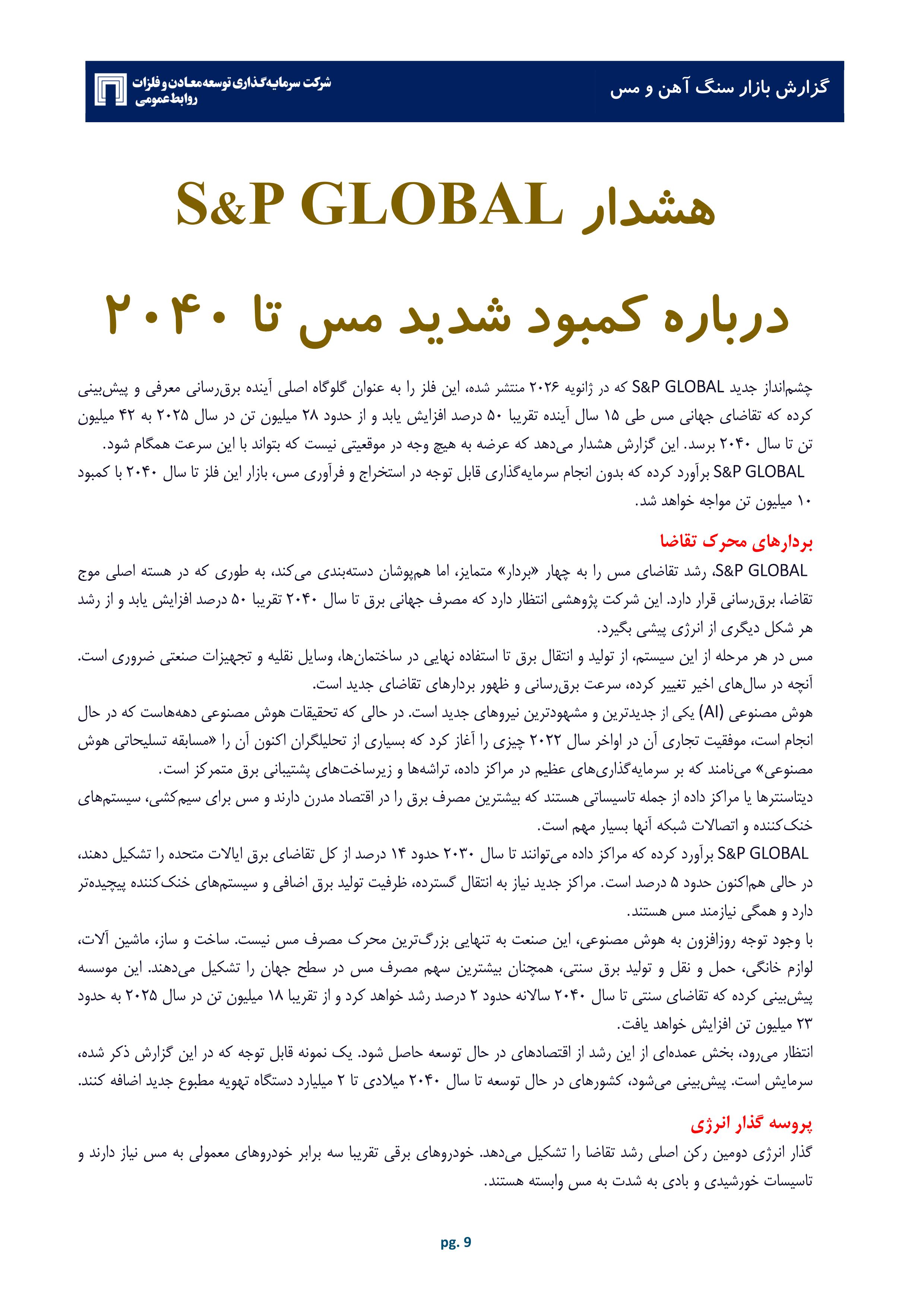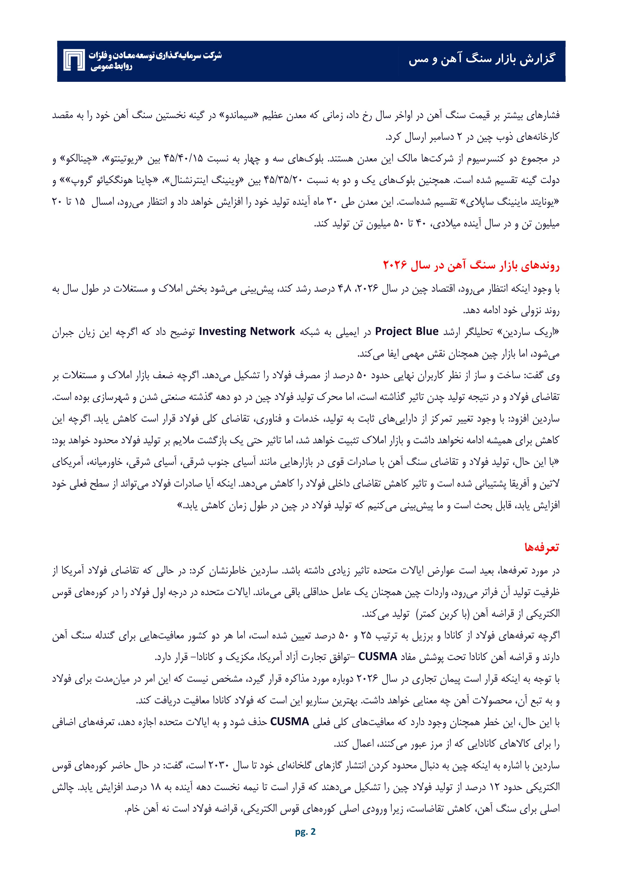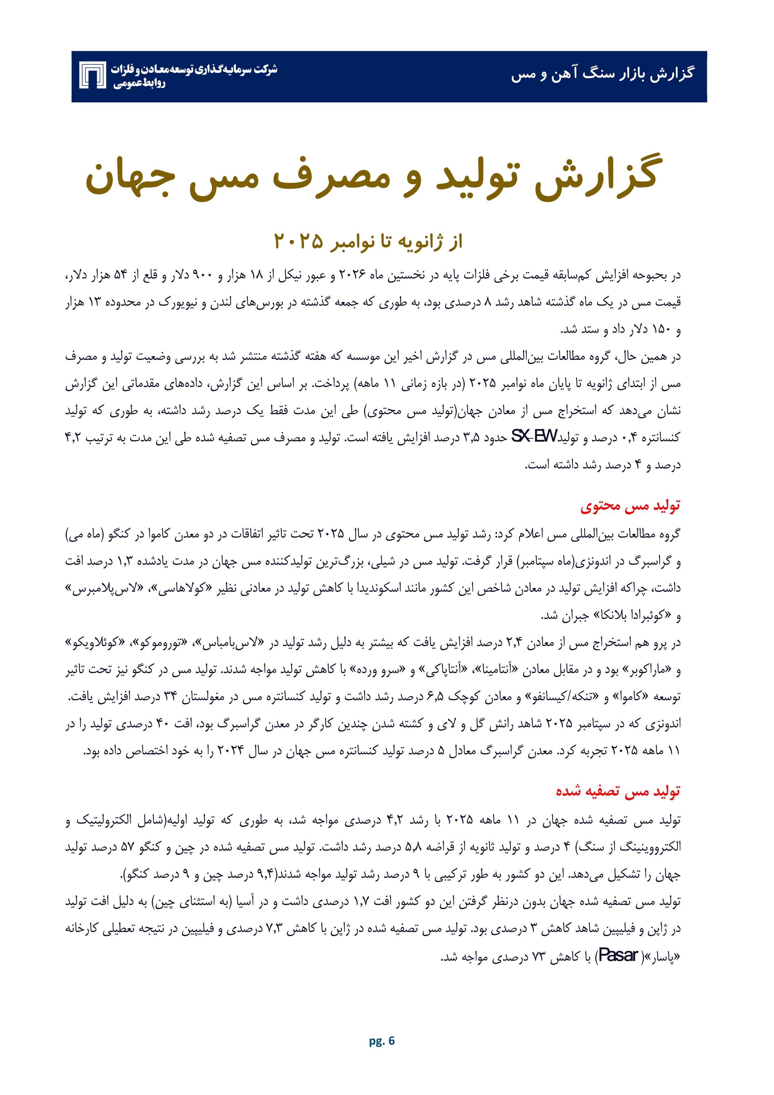 کاربرد در ساخت فولاد، سنگآهن را به یکی از پرکاربردترین و ضروریترین کالاها در جهان تبدیل کرده و در نتیجه، سرنوشت آن به شدت به قدرت بخشهای ساخت و ساز و تولید وابسته است. در مورد مس هم میتوان گفت، این فلز از ساخت و ساز، تولید خودرو و برق گرفته تا مراکز داده هوش مصنوعی، انرژی پاک و برقیسازی تقریبا در تمامی ابعاد زندگی امروزی نقش دارد و بررسی بازار این دو فلز از اهمیت خاصی برخوردار است. بنابراین در این گزارش علاوه بر بررسی گزارشهای جدید از تولید و مصرف مس و سنگ آهن به بررسی دیدگاه تحلیلگران درباره آینده این دو فلز نیز پرداخته شده است که در ادامه مشروح این گزارش را میخوانید: