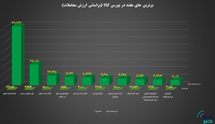 به گزارش کیوسکخبر به نقل از کالاخبر ، برترین های بورس کالای ایران درهفته منتهی به ۲۷ تیر ماه براساس ارزش فروش شرکت ها در بازار فیزیکی به شرح زیر است: