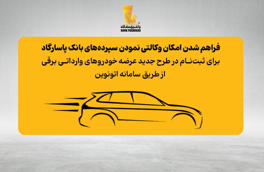 امکان وکالتی نمودن غیرحضوری تمامی حسابهای «بانک پاسارگاد» به منظور ثبتنام در مرحله جدید (دوم) طرح عرضه خودروهای وارداتی، فراهم شد.به گزارش کیوسکخبر به نقل از روابط عمومی بانک پاسارگاد، مشتریان محترم میتوانند از روز چهارشنبه مورخ ۱۴۰۴/۰۸/۲۱ تا روز دوشنبه مورخ ۱۴۰۴/۰۸/۲۶ با مراجعه به آدرس vbank.bpi.ir، بهصورت غیرحضوری نسبت به وکالتی نمودن یکی از […]