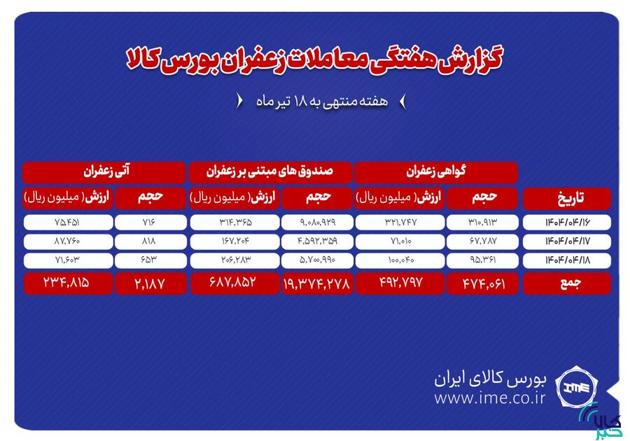 گزارش هفتگی معاملات زعفران نشان میدهد که در هفته منتهی به ۱۹ تیر ماه معادل ۲۱۹ کیلوگرم زعفران نگین به ارزش حدود ۲۳.۴ میلیارد تومان در بازار آتی بورس کالا داد و ستد شد. به گزارش کیوسکخبر به نقل از کالاخبر ، آمار معاملات زعفران در هفته گذشته نشان میدهد که در بازار آتی زعفران […]